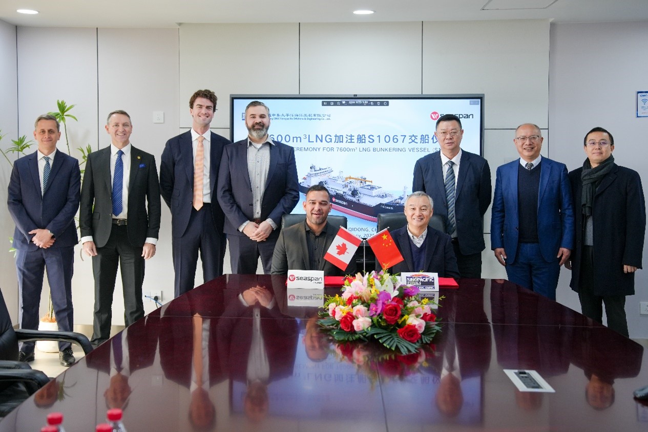 Bureau Veritas Marine & Offshore (BV), a global leader in testing, inspection, and certification, is pleased to announce the successful delivery of the third 7,600m³ LNG bunkering vessel, S1067, built by Nantong CIMC Sinopacific Offshore & Engineering Co., Ltd. (CIMC SOE) for Seaspan Energy. This project is a further example of BV’s continued collaboration with leading shipbuilders, charterers, and shipyards to continue to support the development of LNG bunkering vessels, which are a vital tool in supporting the maritime industry in its transition to more sustainable fuels.